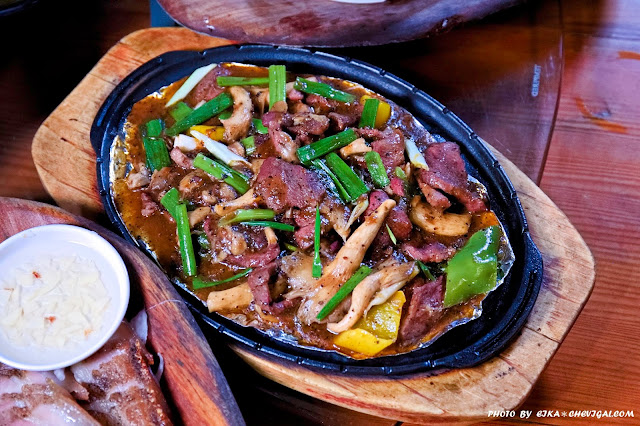 石板雙拼也是當天同桌友人都特別喜歡的菜色,以木質器皿盛裝飛魚卵香腸與鹹豬肉,特別有種原始道地的感覺。
