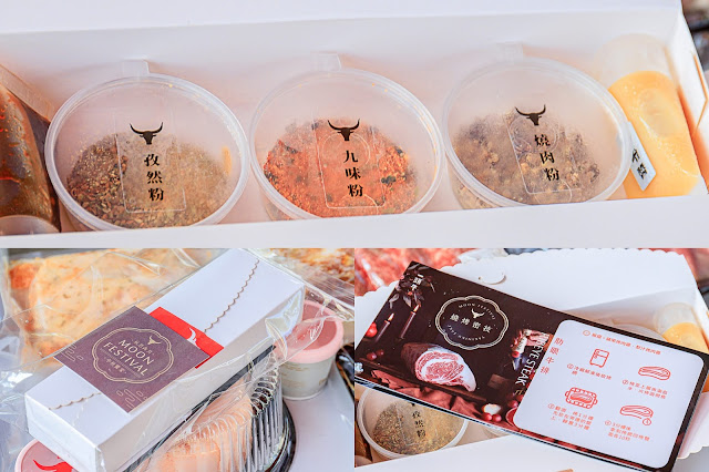 對了,一頭牛日式燒肉的燒肉禮盒真的很貼心,原本以為小盒裡面附的是餐具,打開一看才發現是各式醬料,有孜然粉、九味粉、燒肉粉、味噌醬與燒肉醬,小冊子還有部份肉品的建議調理方式,在家烤肉也能很有質感。