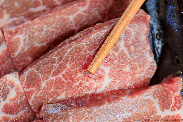 雪紋牛肉的肉質口感緊實細緻,油脂比例豐厚,不過一點也不膩口,吃起來油脂香氣濃郁,還能感受到牛肉的香甜。