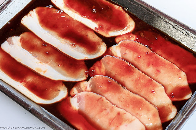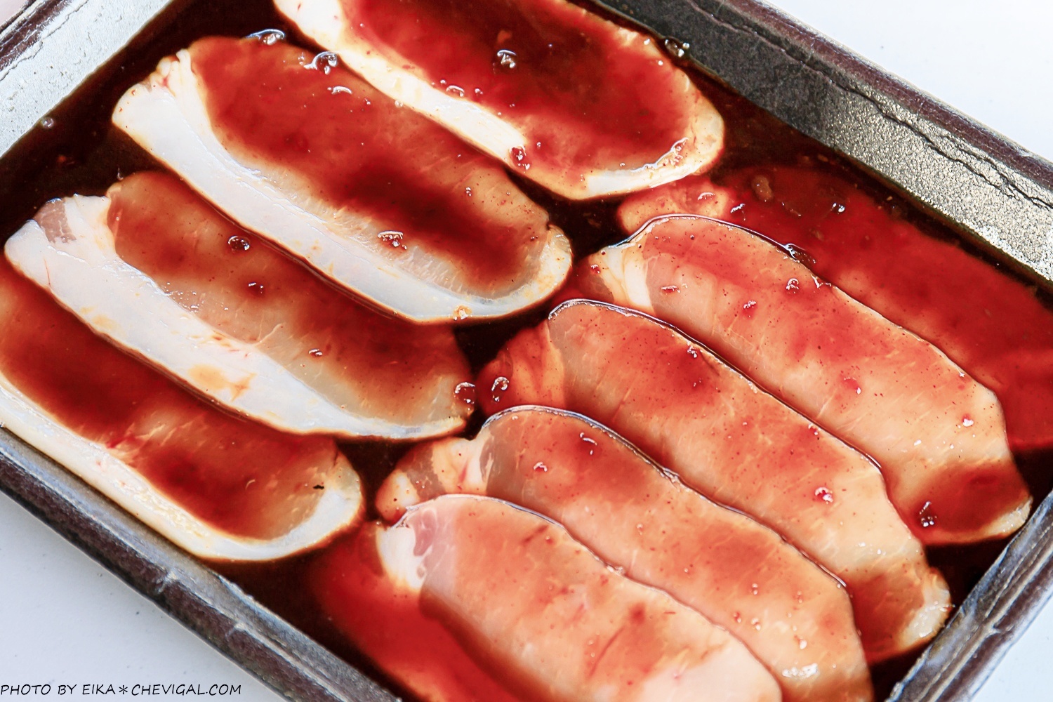 這款極黑豬里肌真的很酷,因為整盒附有一大包梨汁燒肉醬,在享用前可以浸泡並按摩大約30秒,肉質就會剛好入味又不過鹹;我們還是第一次遇到燒肉禮盒附有醬料可以自己醃漬,其實還挺有樂趣的~