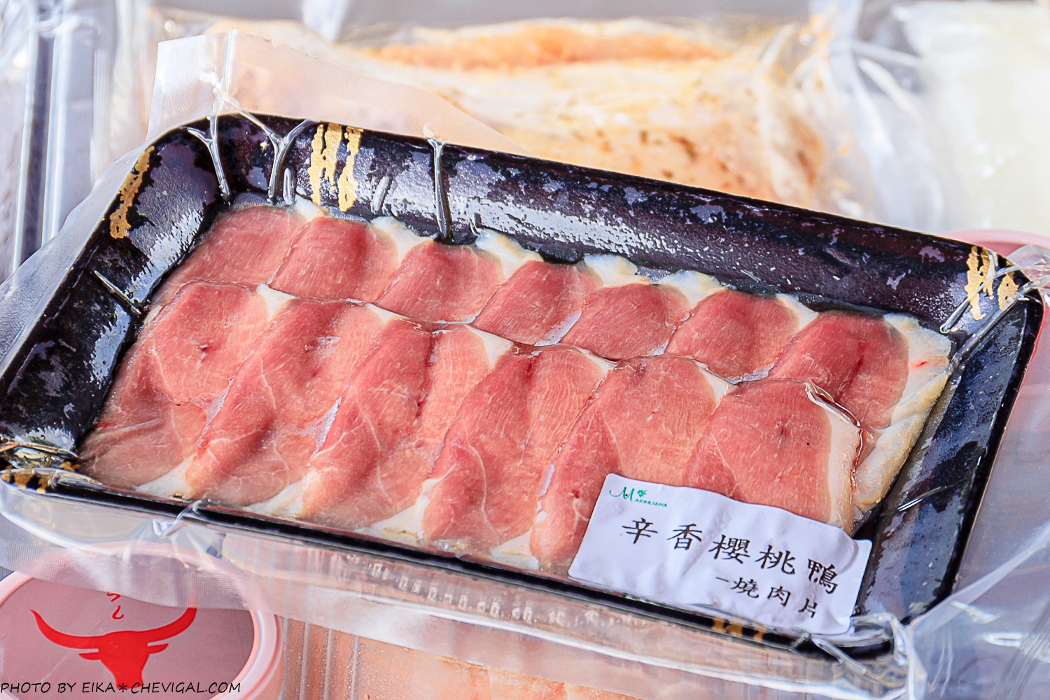 禮盒裡除了烤肉常見的牛、豬與雞肉,特別的是還有搭配櫻桃鴨,櫻桃鴨選用的品質還不錯,肉質富有彈性,而且片數還不少,新鮮度也很棒。
