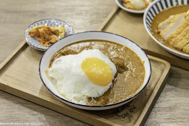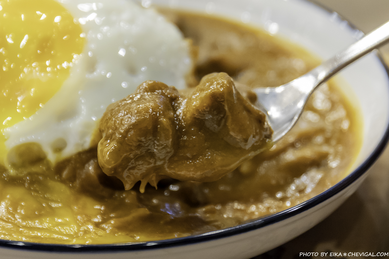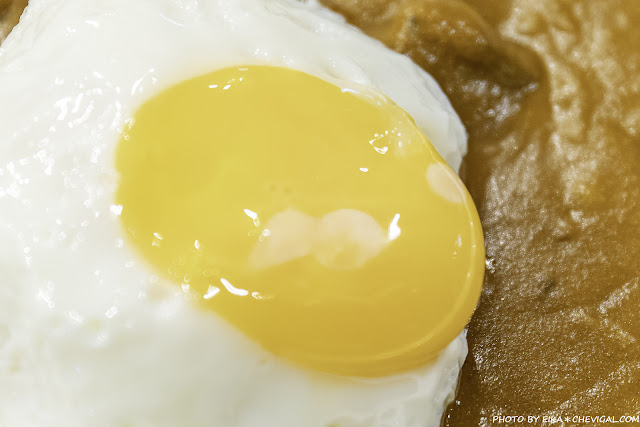 牛咖哩會附上一顆半熟的荷包蛋,老闆建議可以先嘗試原味以後,再把蛋黃一起與咖哩攪拌,一次品嘗兩種不同的風味。
