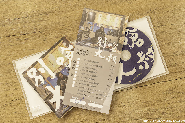 附上店內的菜單給大家參考;值得一提的是別嗆大叔的菜單是以專輯的方式呈現,品名也都是耳熟能詳的經典歌曲,設計上十分契合唱片行的特色。