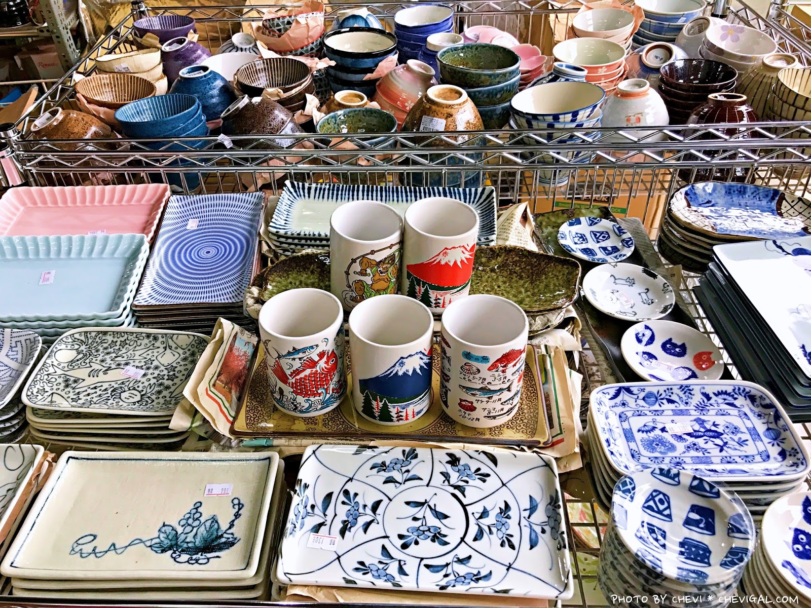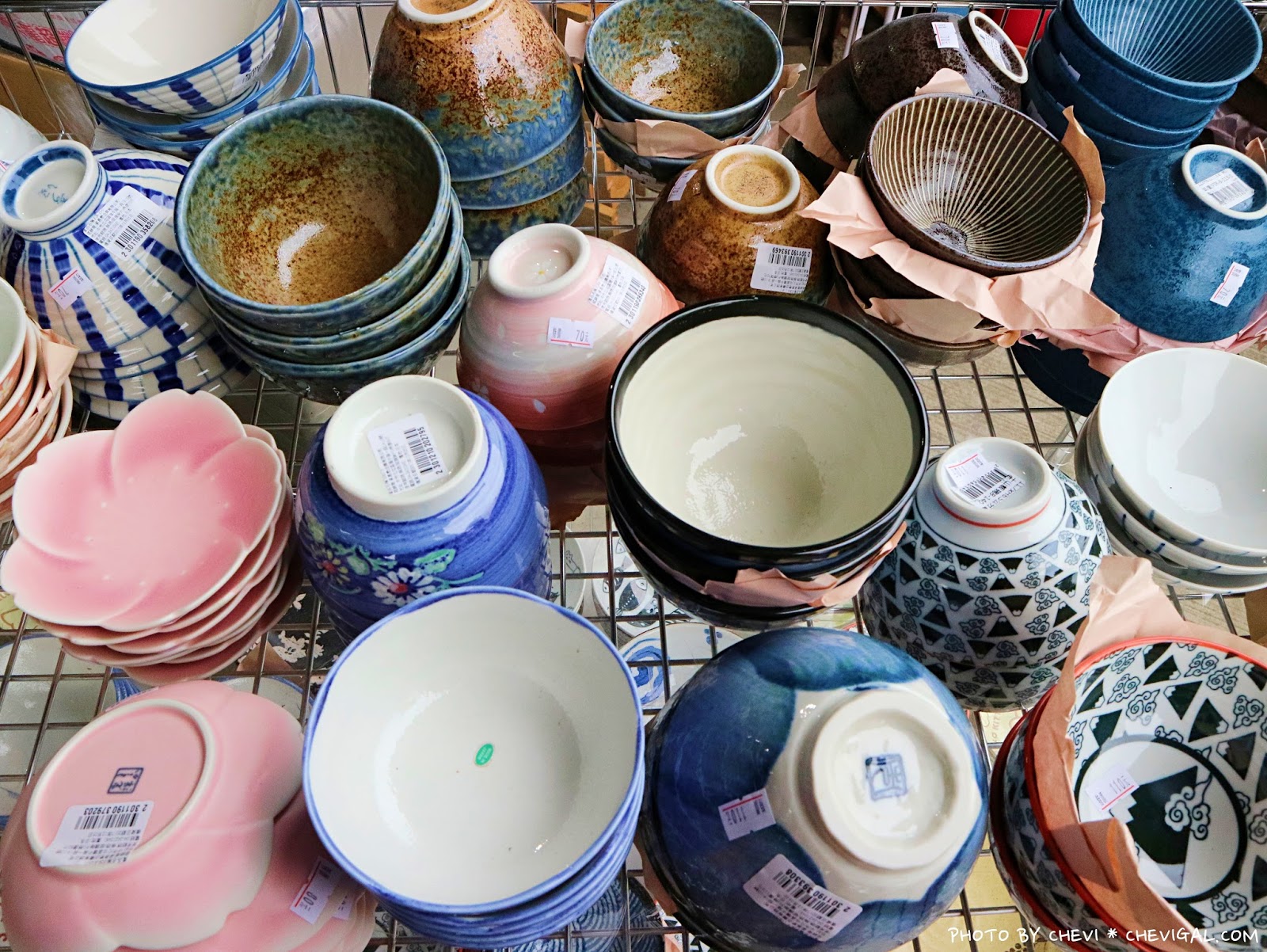 來到餐具特賣會,相信女孩兒們最愛逛的就是這區啦!各式花色的日本製碗盤,有著他國製製無法仿造的細緻花紋與質地,幾乎通通都是百元有找!有些甚至不用50元,外面簡直買不到啊!