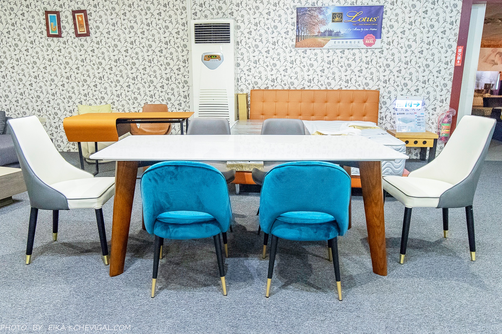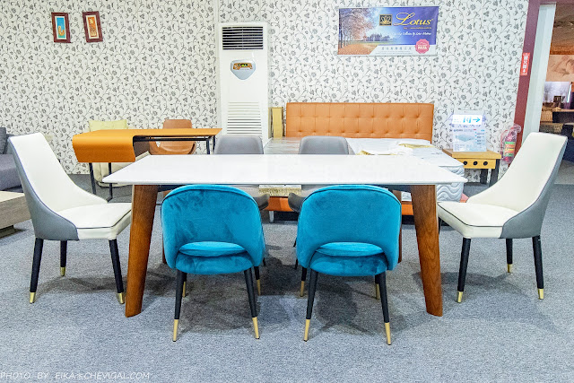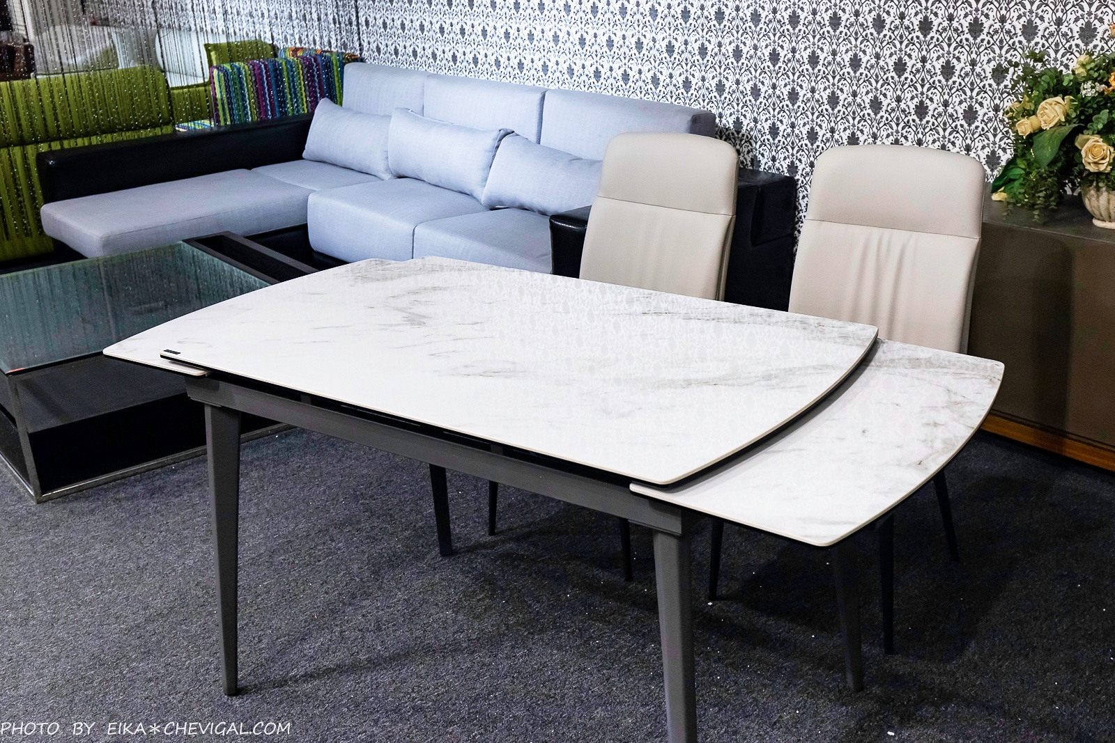 這裡除了比較高貴的原木類餐桌,現在也有這種仿石面的美耐板材質,不僅價位只要原木的1/3,整體的重量更比天然石來得輕便,搭配上可延伸的桌面,幾乎可以說是家庭必備款!