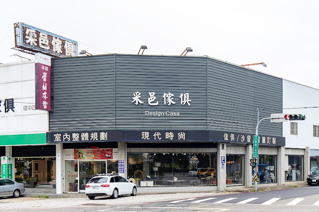采邑家具的店門口前即可停放愛車,這裡比起一般量產家具來說,整體的質感明顯不同。雖然以銷售金字塔的定位而言,這裡是設定在中高端的價位,但是與台中七期裡面許多知名家具相比,不少相似的物件其實都具有價格上的優勢。