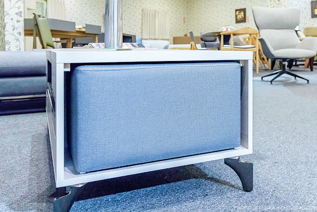 最酷的是,旁邊的小椅子還可以直接收納到桌子裡面,完全不佔客廳空間,客廳空間較小的朋友不妨可以參考看看。