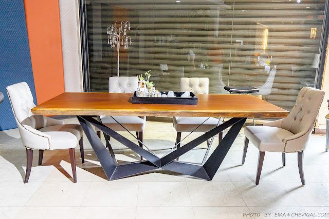 另外還有多種款式餐桌可以參觀選購,不同材質的組合能夠帶來意想不到的效果。像是半透光的桌面材質,除了可以讓空間更有延伸感,沉穩的色調之中又多了幾分輕透活潑,就看你們希望營造何種空間氛圍囉!