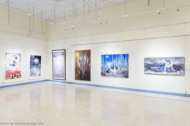 我們參觀的這天,剛好正值由臺中市政府文化局、臺中市立美術館所籌備舉辦的大墩美展,廣邀來自世界各國從事書法、篆刻、膠彩、油畫水彩、墨彩、版畫、攝影、雕塑、工藝、數位藝術等創作領域的藝術家共同參與,可以一次飽覽多件優美藝文作品。