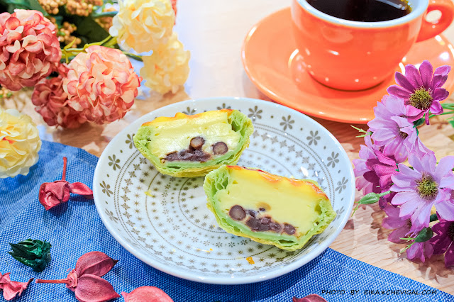 表面帶點微綠的抹茶口味,吃起來有著淡淡的抹茶香氣,甜度不會太高,不過我們覺得蛋香可以再濃郁一些會更好。
