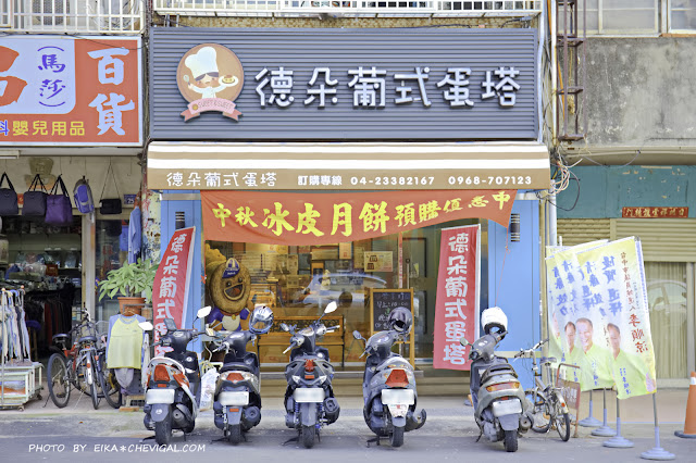 德朵葡式蛋塔其實距離柚柚家非常近,就在烏日國小對面,前身就是歷史悠久的明道書局~目前已營業一年多左右,平常主要是專門販售各款口味的蛋塔,今年中秋節還推出了中秋禮盒!