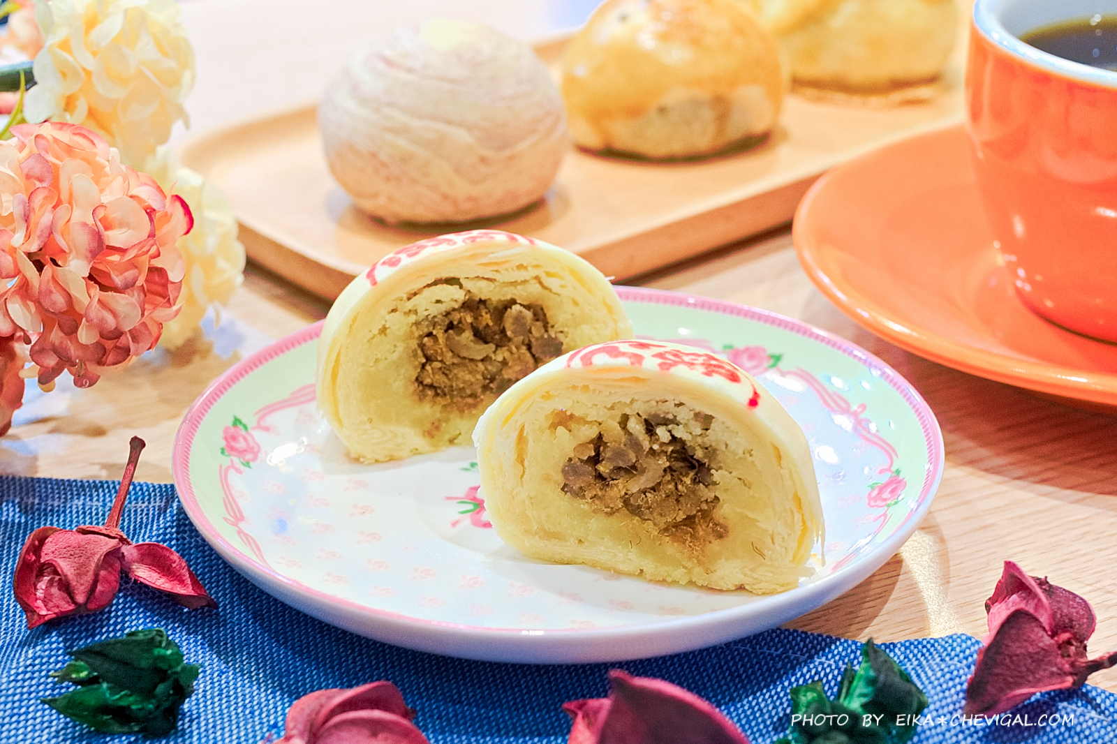 中秋月餅當中另項最為經典的就是奶油豆沙蛋黃酥啦!光是看到金黃飽滿的外表就讓人快要凍未條,一切開來更是讓我們驚呼連連~