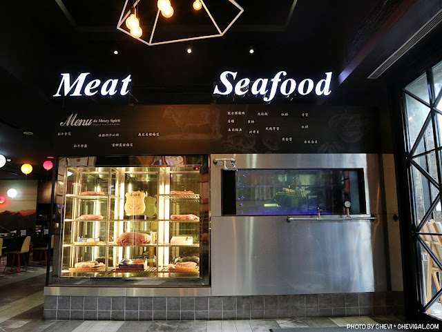 深色質感的大理石風格,帶給人沉穩內斂的感受;在門口的候位區就能看到多款酒品與新鮮肉品陳列,在這裡大啖美食的同時,也能有美酒享用,可以說是一大享受。