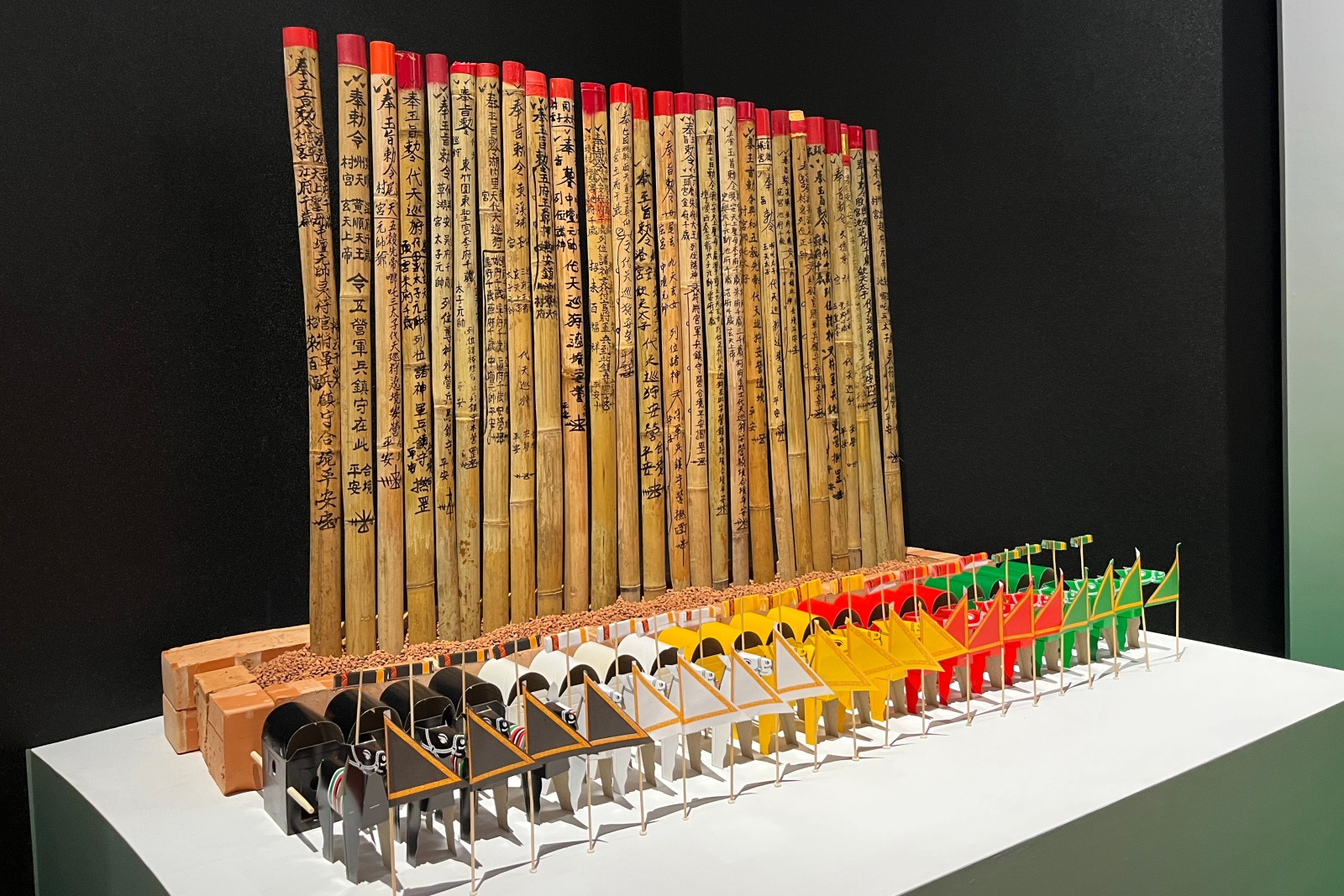 復刻舊式的傳統展櫃裡,更陳列了節慶與民俗活動中常見的平安物,像是香包、符咒、石敢當、大符、香火袋與山海鎮等,體現彰化節俗如何創造出平安心定的感受。