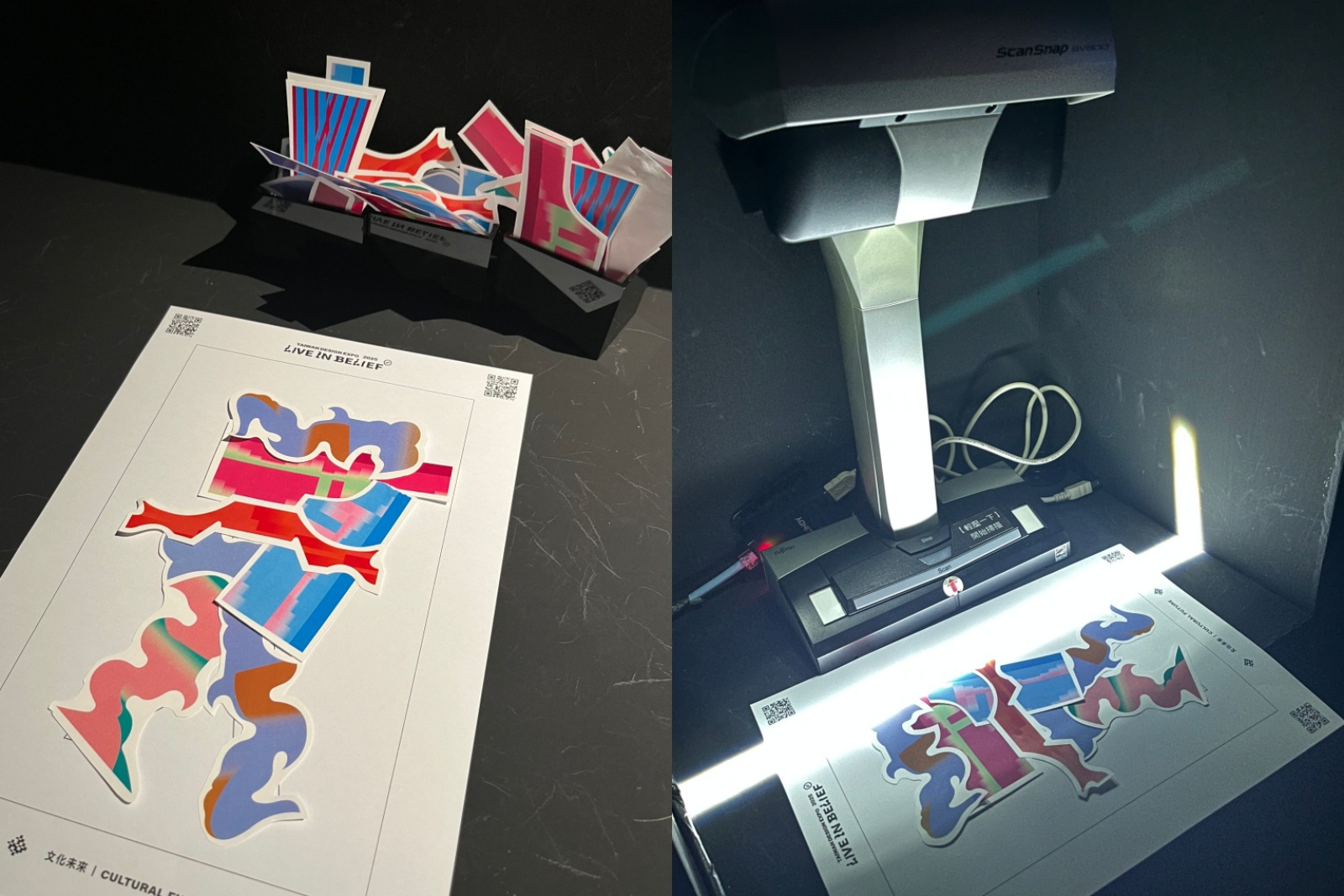 最後這區「文化未來」也相當有意思,將個人的創作掃描後,即時投影在牆上,讓人感受到藝術原來也能加此天馬行空、五彩斑斕!