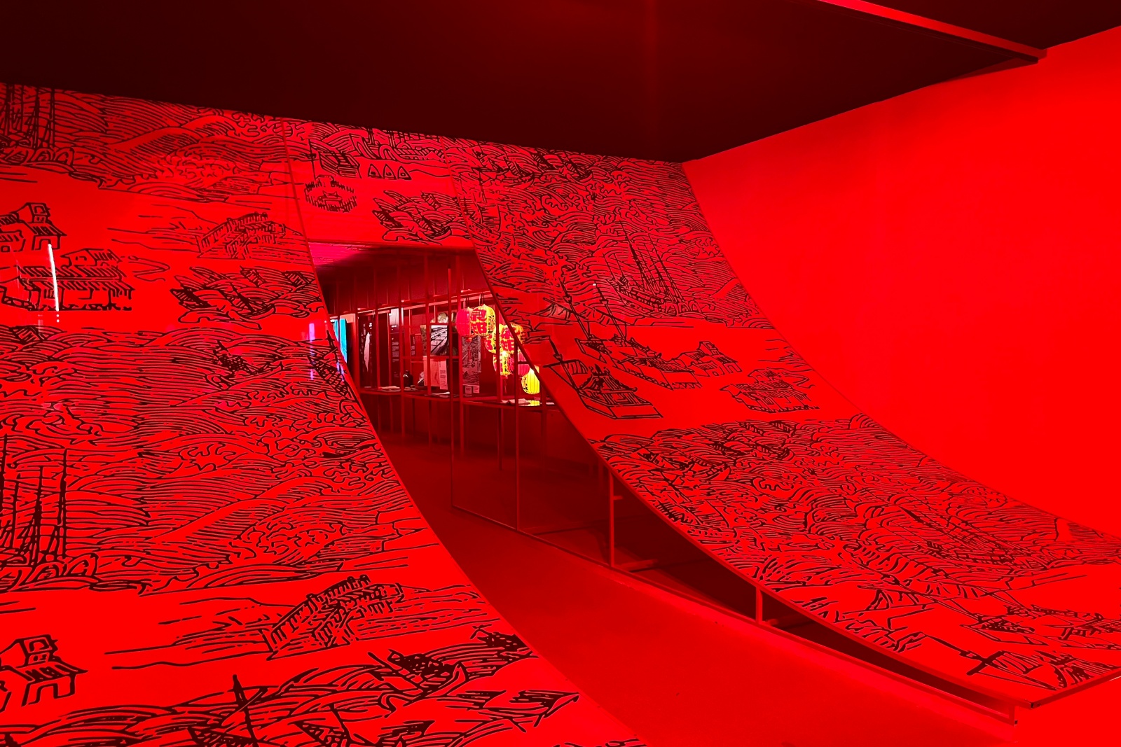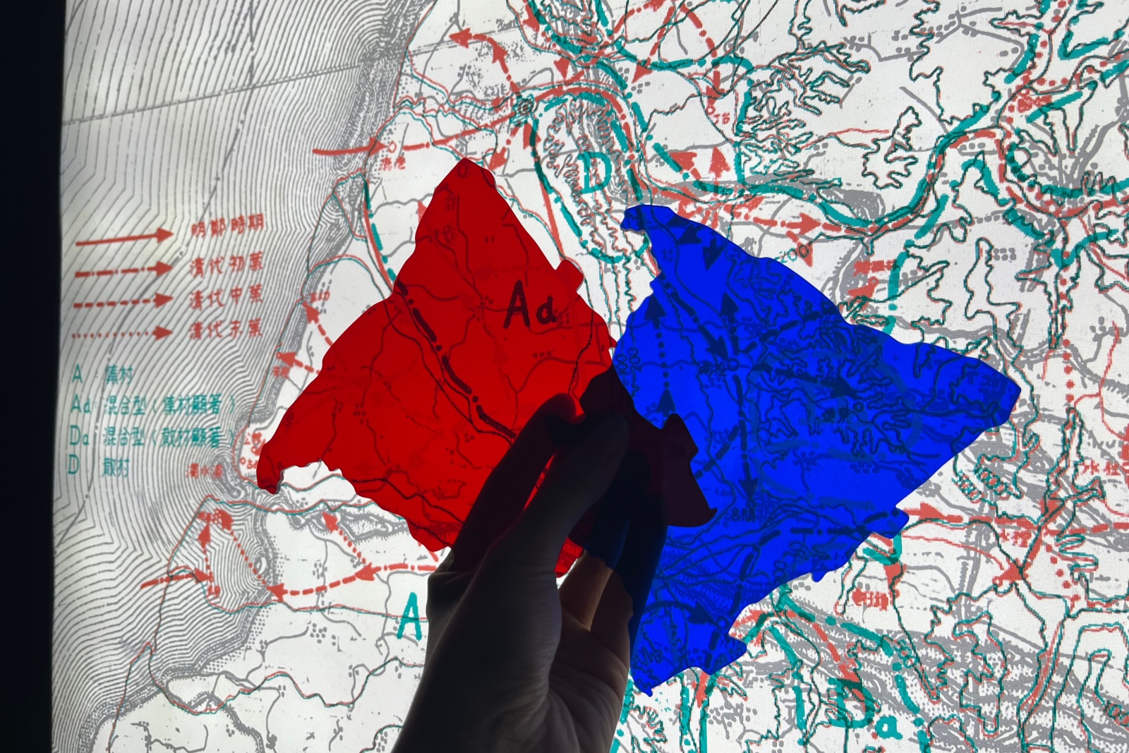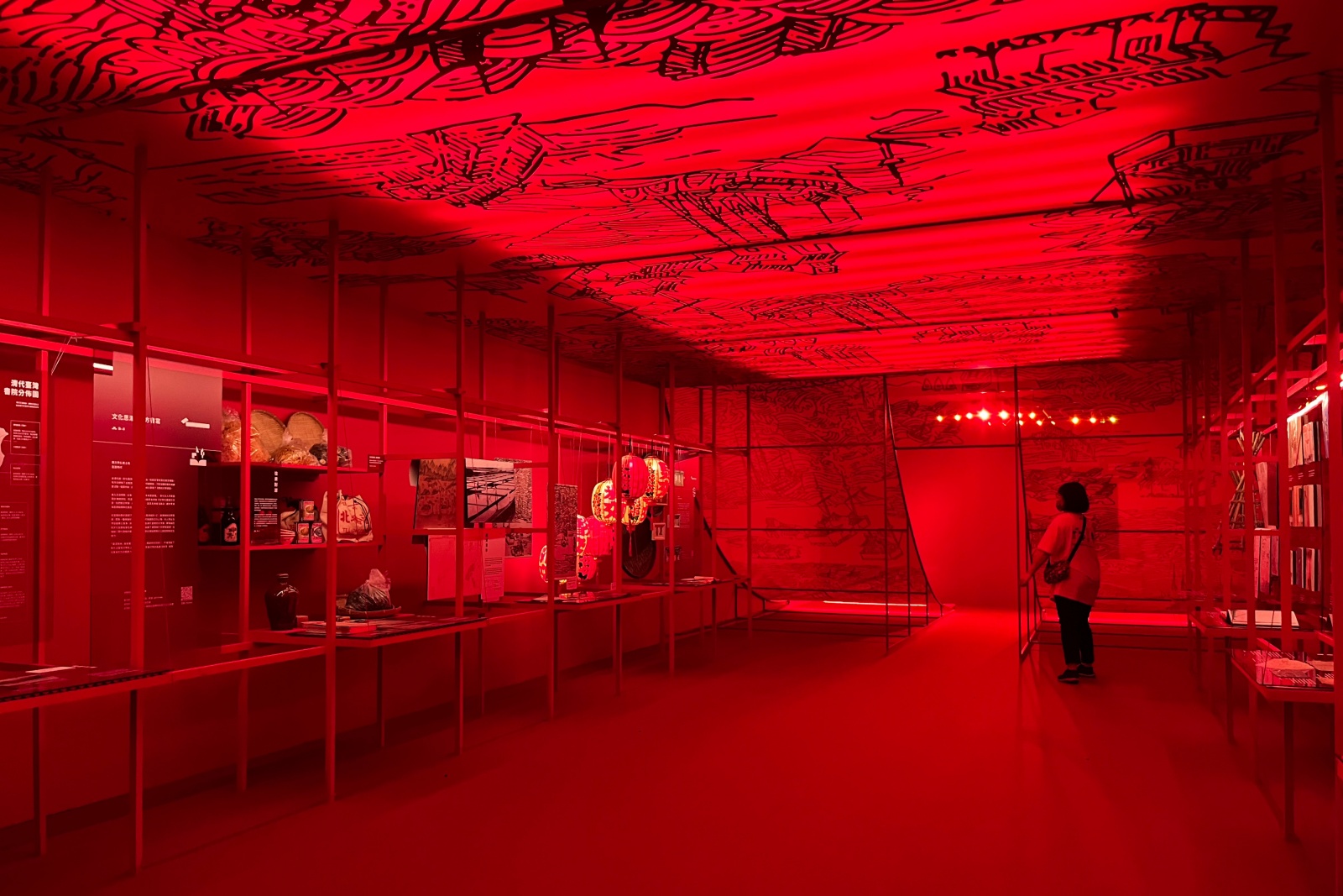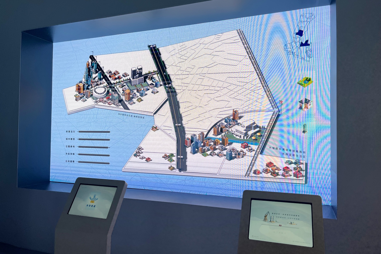 透過水路地圖燈箱,以及整體空間營造的水文意象、土壤意象等元素,漸漸感受文化源起的能量。