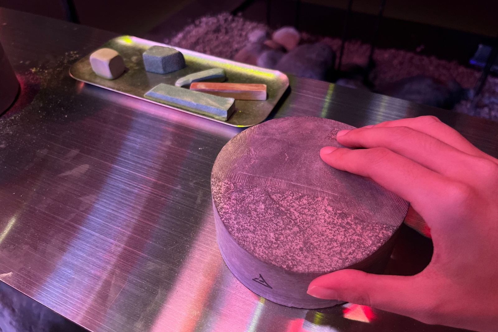 實體作品後方還有材料特性介紹、製作工具等,可以觸碰實際感受。