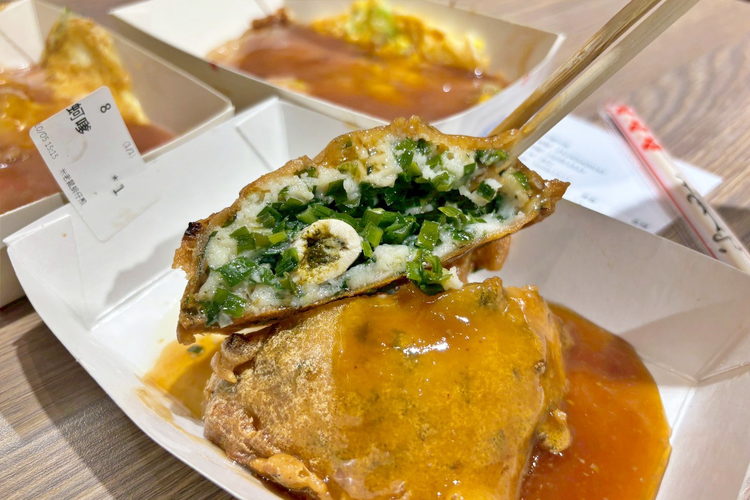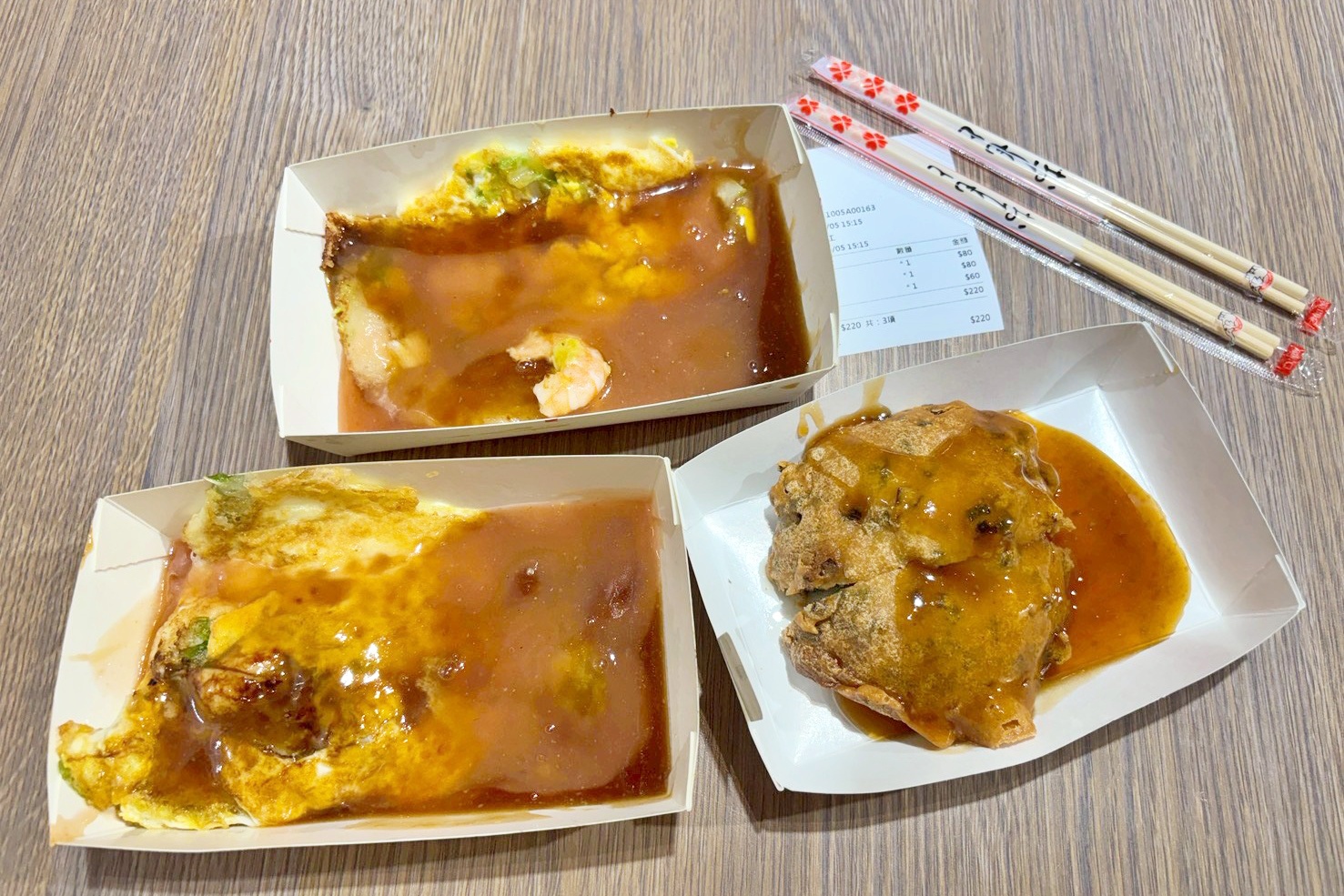 點了蚵嗲、蚵仔煎與蝦仁煎,我們最愛大顆飽滿的蚵嗲,大口咬下酥脆到不行,吃起來很過癮!