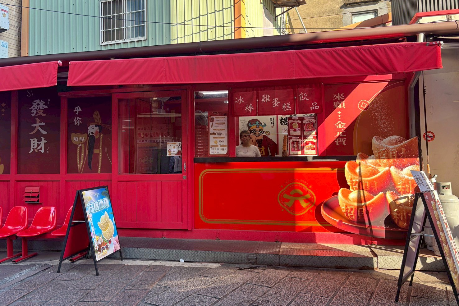 旁邊還有一間獨特的「元寶雞蛋糕」,雞蛋糕的蛋香超迷人,甚至還有販售元寶造型的冰棒,好吃又非常討喜呢!