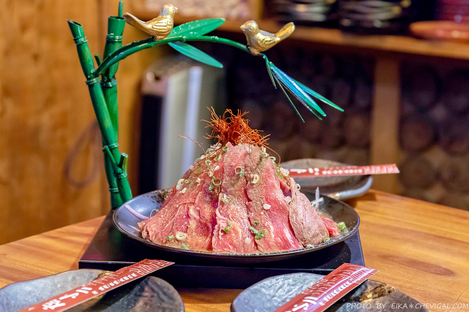 日式生牛肉$280元,一上桌就像迷你版的火山,多片牛肉片整齊地堆疊著,頗有層次感。