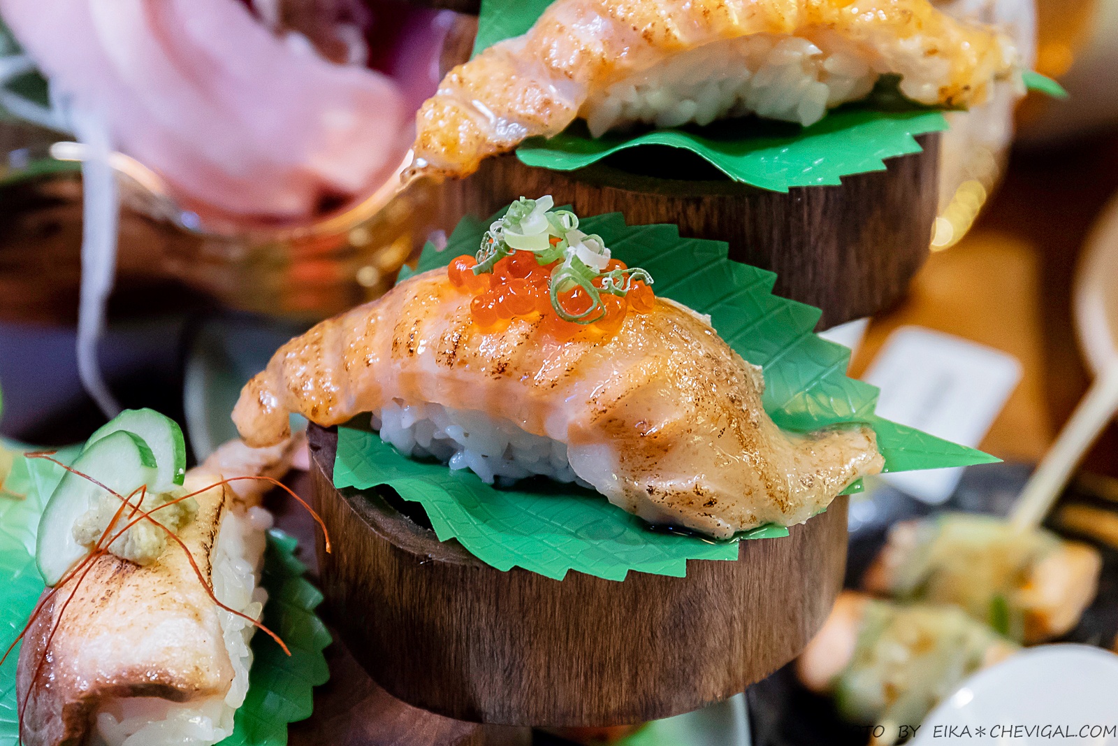 炙燒鮭魚握壽司的香氣比刺身來得更為飽滿誘人,表面還有鮮甜的鮭魚卵,每口特別富有飽嘴感,吃起來很滿足。