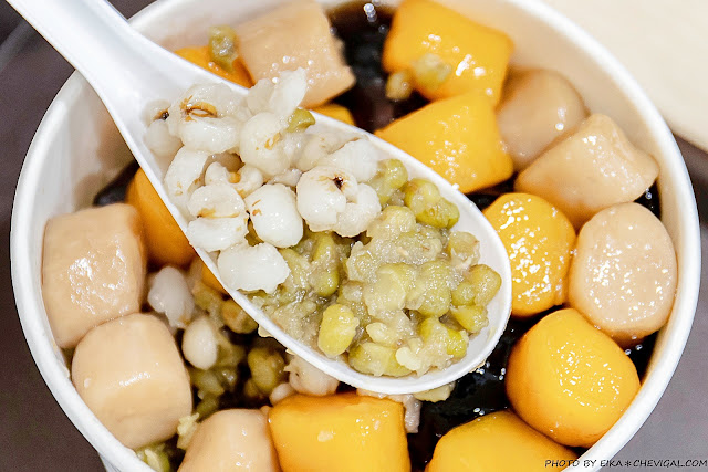 綠豆與薏仁不僅顆粒飽滿,而且都有煮透且不過於軟爛;雖然綠豆的甜度對魚編來說真的還是比較高,不過搭配底部的碎冰一起吃,其實還蠻OK的,分享給你們哦:)