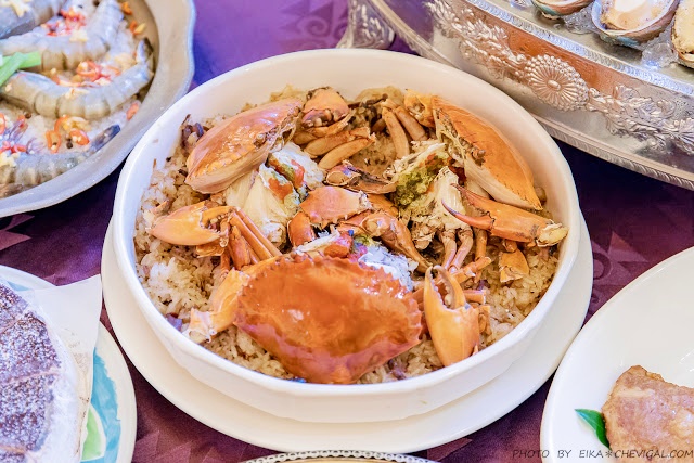 紅蟳御糯飯,紅蟳的香氣非常飽滿,飽滿糯米的口感略帶Q彈,吃起來不會過於油膩,而且不會搶走紅蟳本身的鮮甜海味,我們都覺得蠻好吃的!