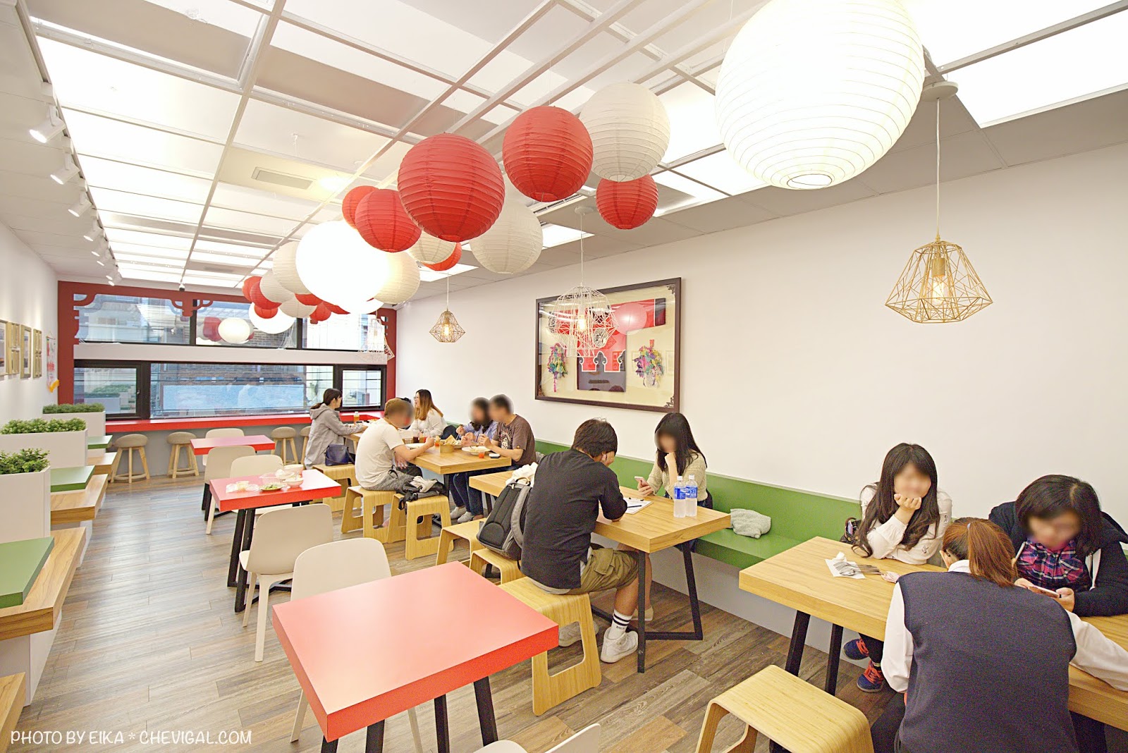 二樓以紅白色系為主,十分喜氣有溫度,抬頭還能看到多盞燈籠高掛。