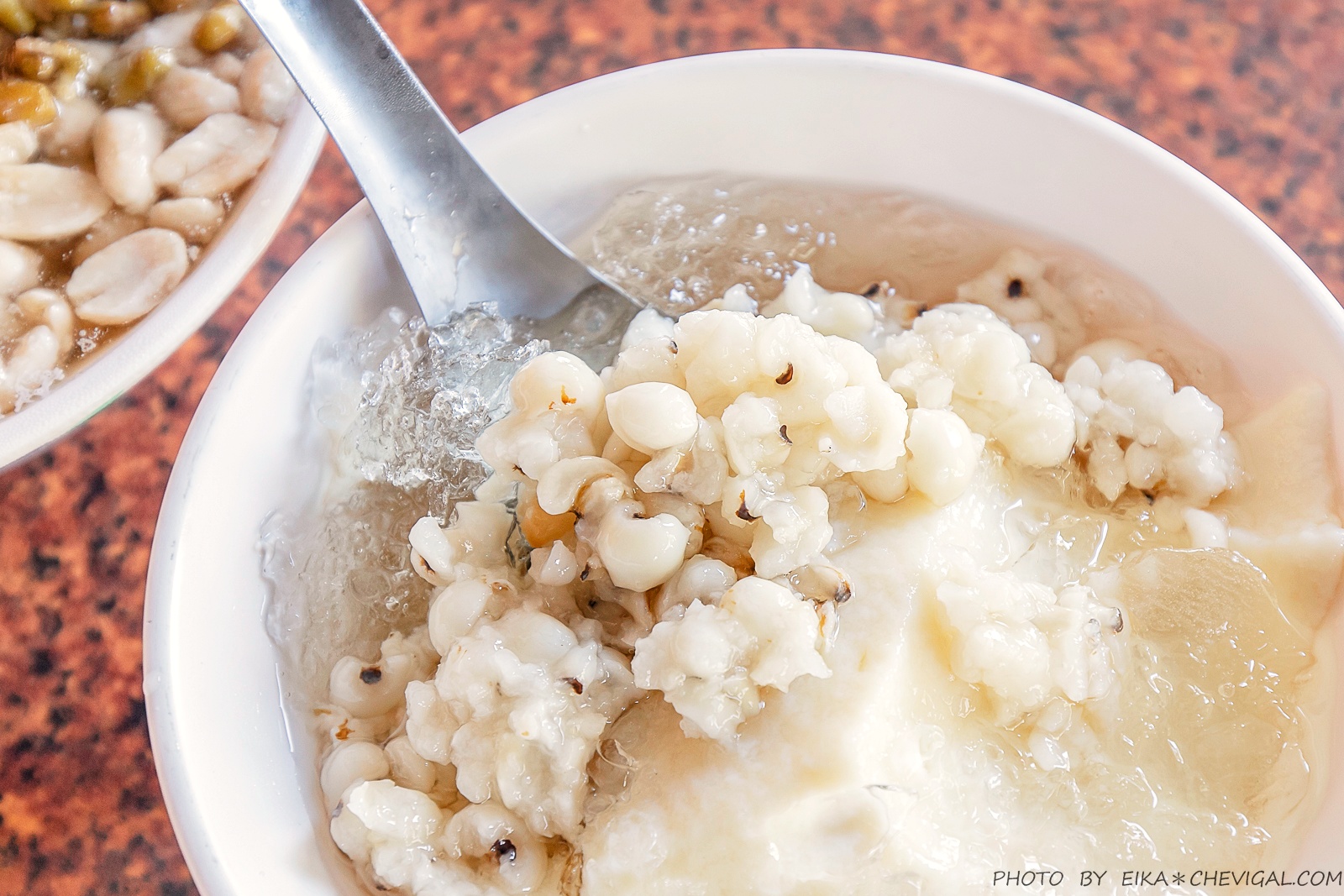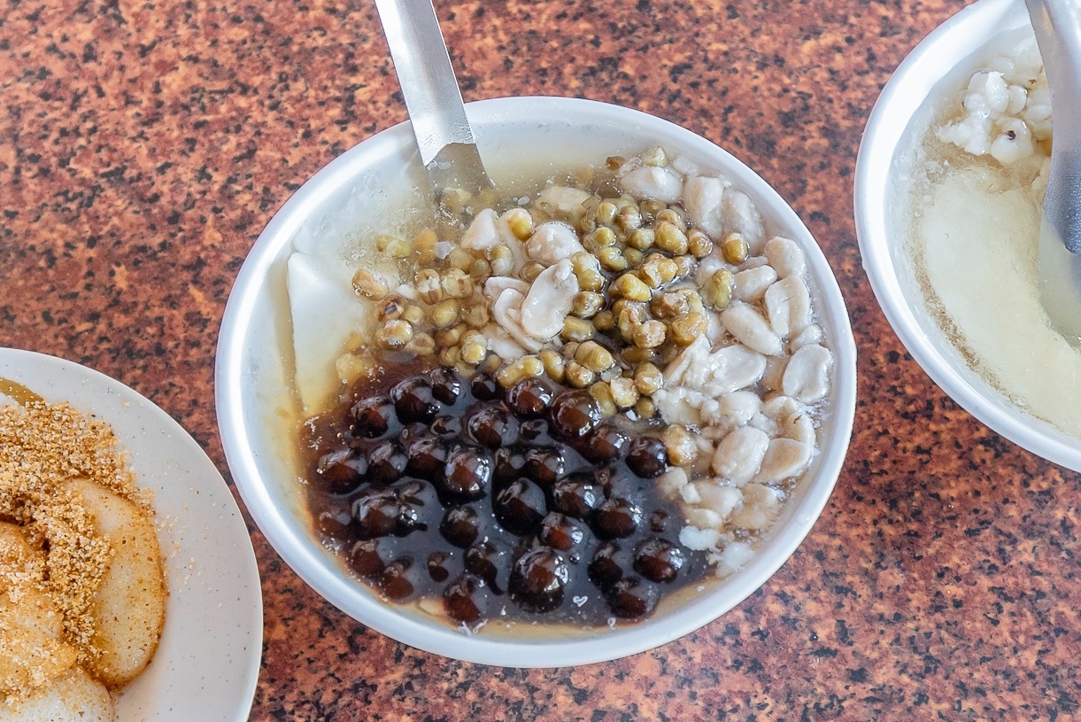 綜合豆花的配料有珍珠、花生與綠豆,整碗的配料份量給得還不少;花生並沒有燉煮至軟爛的程度,還能吃到微硬的口感,可惜整體的甜度偏高,算是比較古早味的豆花。