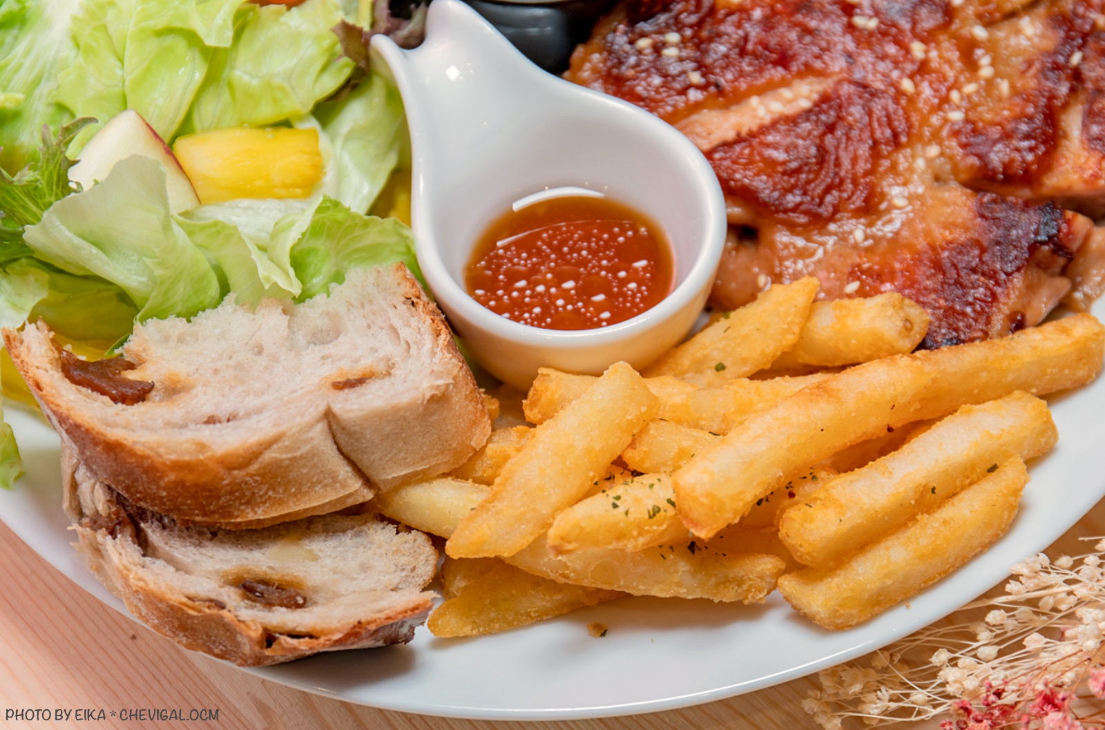 麵包可以吃到果乾的甜味,慢慢咀嚼其實是會有飽足感的!薯條的份量也剛剛好,香酥多肉的口感還不錯。