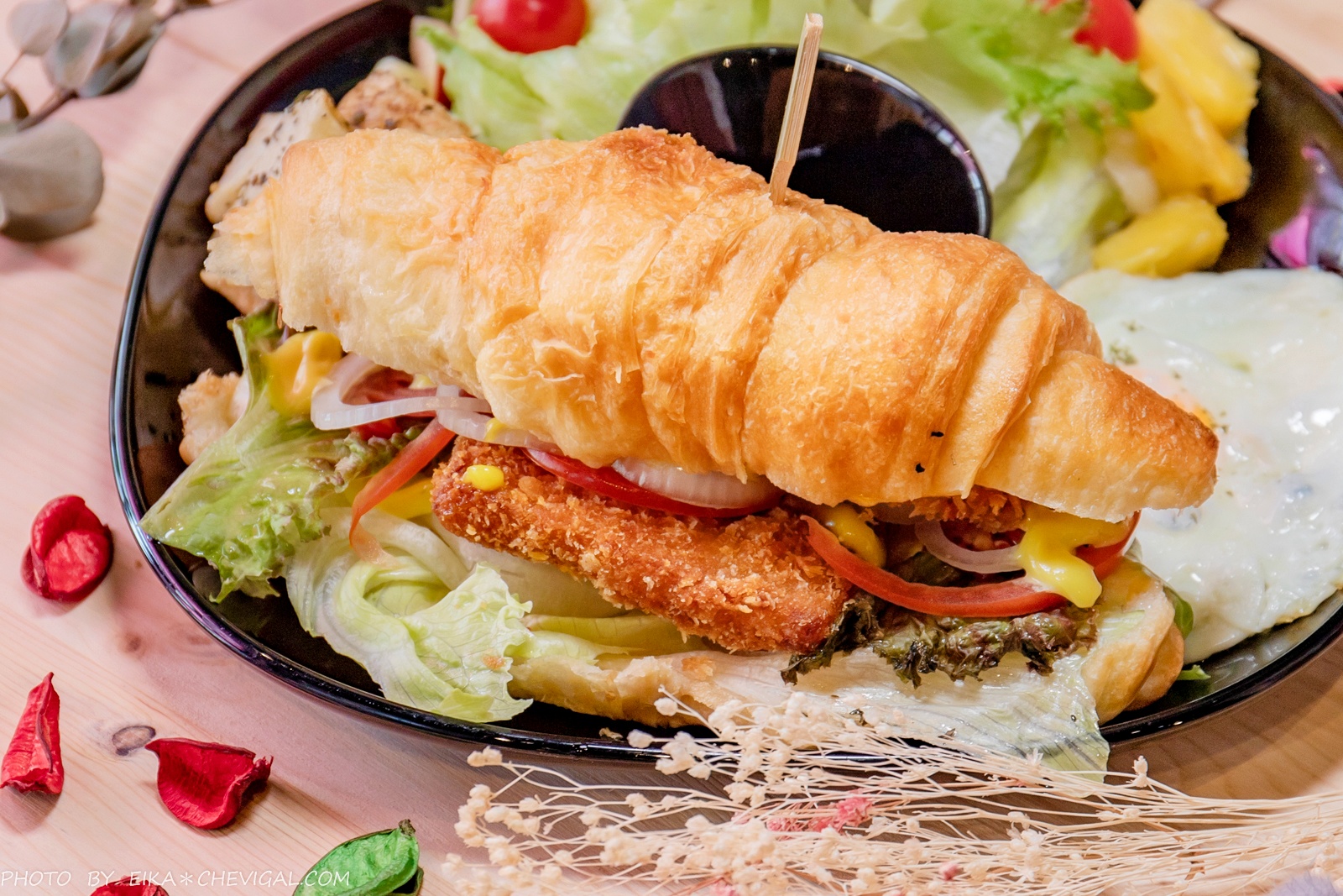 大可頌裡頭的內容物可以說是非常豐富,像是炸蝦、魚排、生菜、牛番茄、洋蔥、切達起司與蜂蜜芥末醬,不論是在口感或香氣都相當有層次,如果蜂蜜芥末醬可以再加少一點點,那就更完美了!