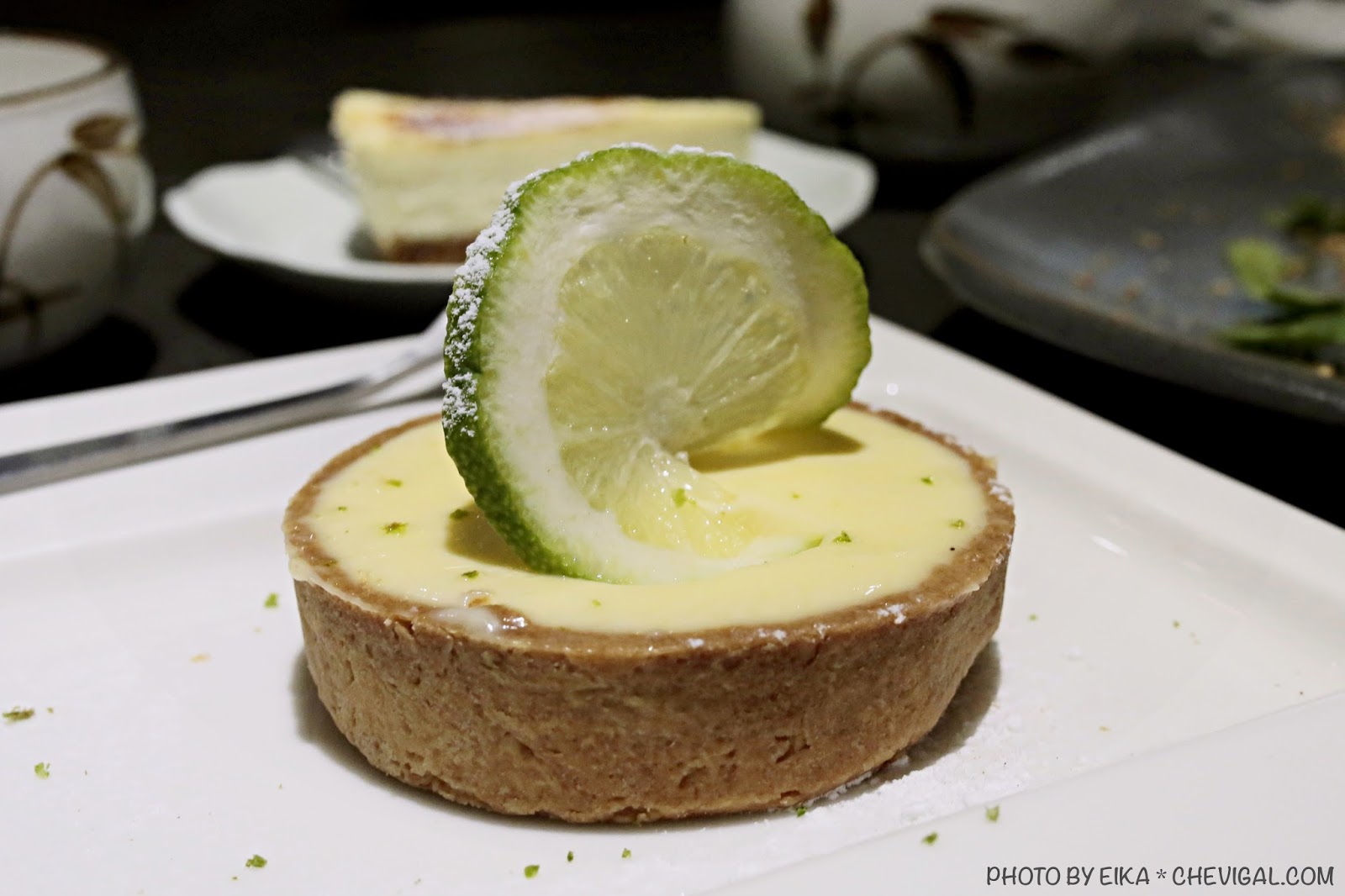旅人檸檬塔,立體的醃漬檸片特別有造型,口感有厚度卻不難咬;檸檬餡有著類似卡士達的口感,格外滑順,香氣有出來,搭配上香酥的塔皮,我們也有喜歡。