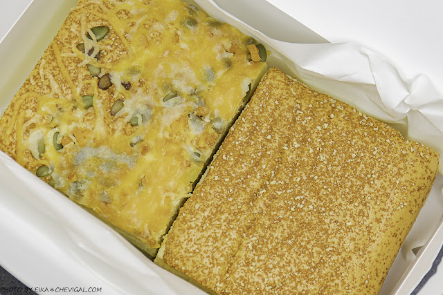 重乳酪起司是我們這次最喜歡的口味,之前吃過的經驗覺得它的口感比較乾一些,但這次的水分倒是保持得還不錯;外皮還有加上滿滿的起司與南瓜子,吃起來的香氣更濃郁飽滿,帶給朋友試吃也是這款最早被大家秒殺!