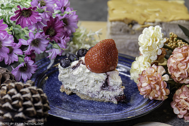 綿密的蛋糕體搭配底下的手指餅乾,吃起來有著非常濃郁的奶香,草莓、藍莓與覆盆莓的酸甜與起司蛋糕交織在一起,順勢帶出了不同層次的果香,莓果控千萬不要輕易錯過哦~