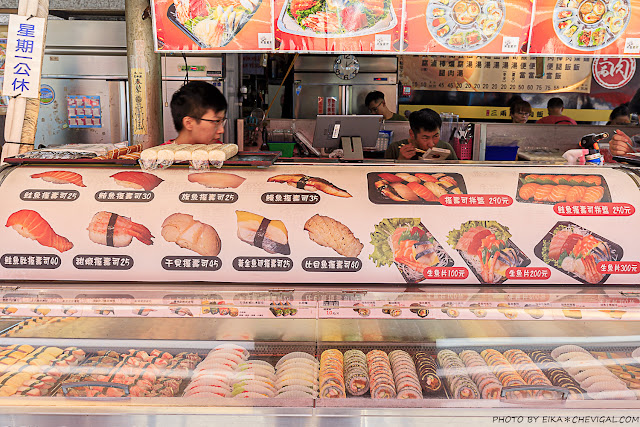 所有的壽司、拼盤、丼飯與生魚片都是手工現做現切,多款壽司一字排開,並保存於18°C的冰櫃裡保鮮,豐富的品項讓我們不禁又有選擇障礙了XD 不過許多老客人挑選壽司時可是特別熟門熟路,如果真的不知道該怎麼挑選,也有配好的壽司拼盤可以選擇!
