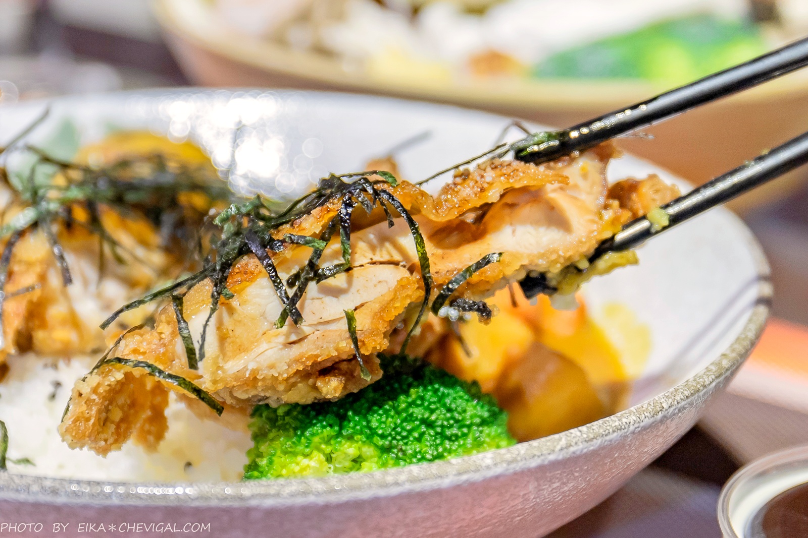 這裡所選用的雞腿排也特別講究,原來是近年來很夯的氣冷雞,比起一般雞肉來說更為鮮甜紮實,而且沒有惱人的腥味;整隻重達9兩的雞腿排不僅早已貼心去骨,而且外表炸得十分酥脆~