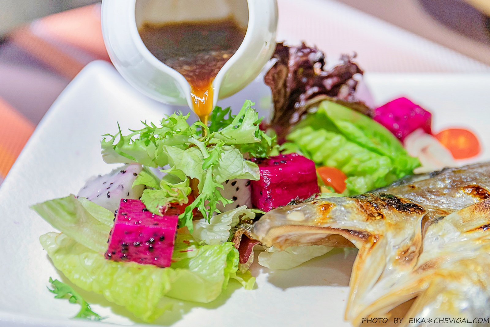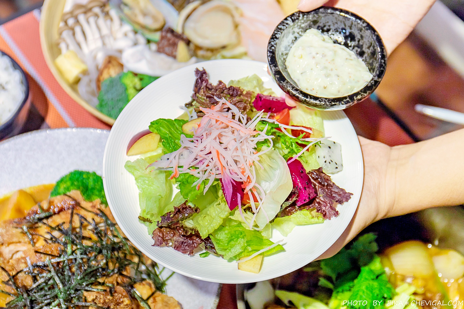 隨盤還有附上蔬果沙拉,淋上柚子和風醬後又多了幾分清新的風味,開胃又解膩。