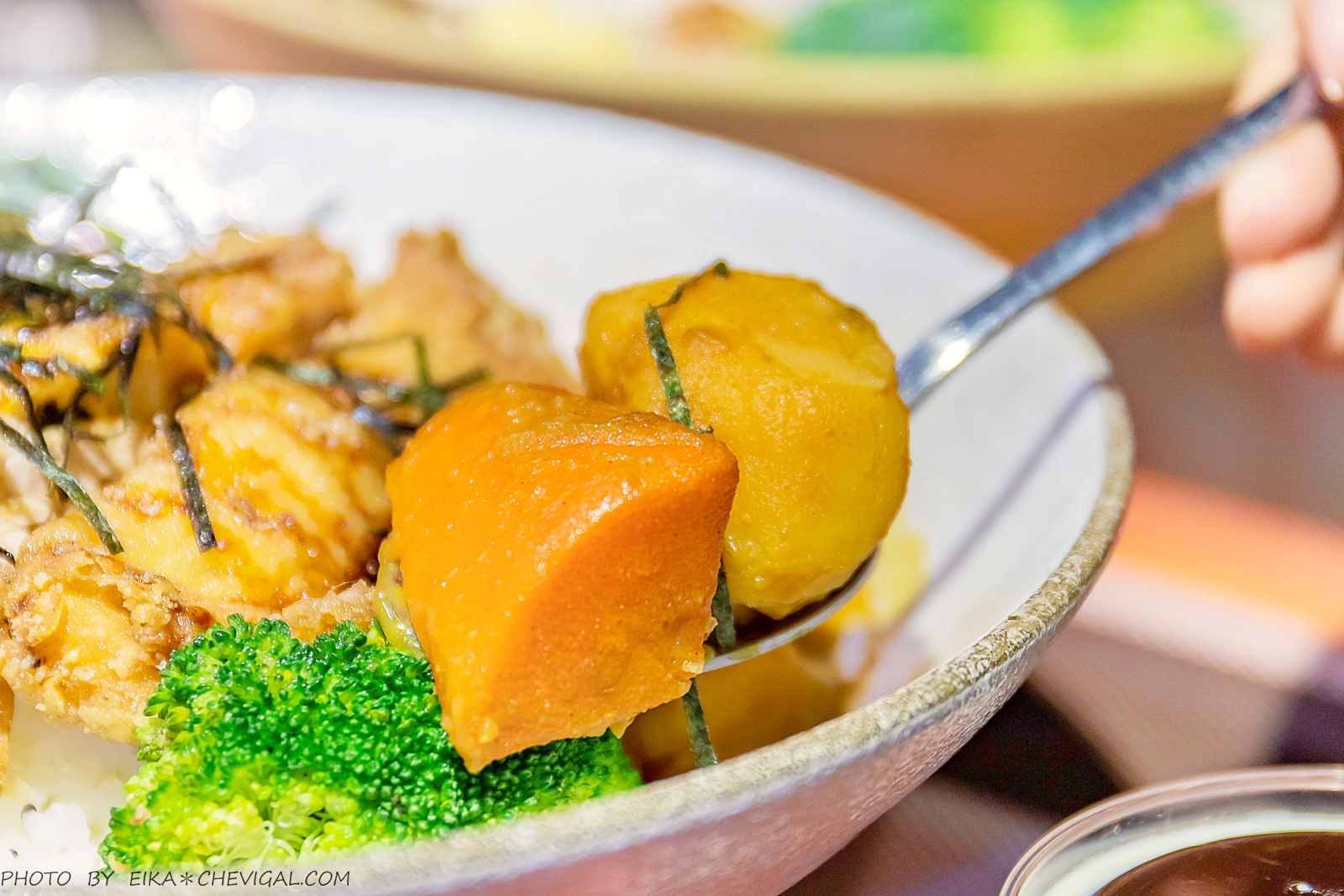 印象中的日式咖哩口味通常比較甜膩,不過這裡的咖哩口味倒是意外地合胃,可以吃得到蔬果自然的鮮甜,風味濃郁順口;如果追求口味的層次感,也許再加點辣粉會更開胃。