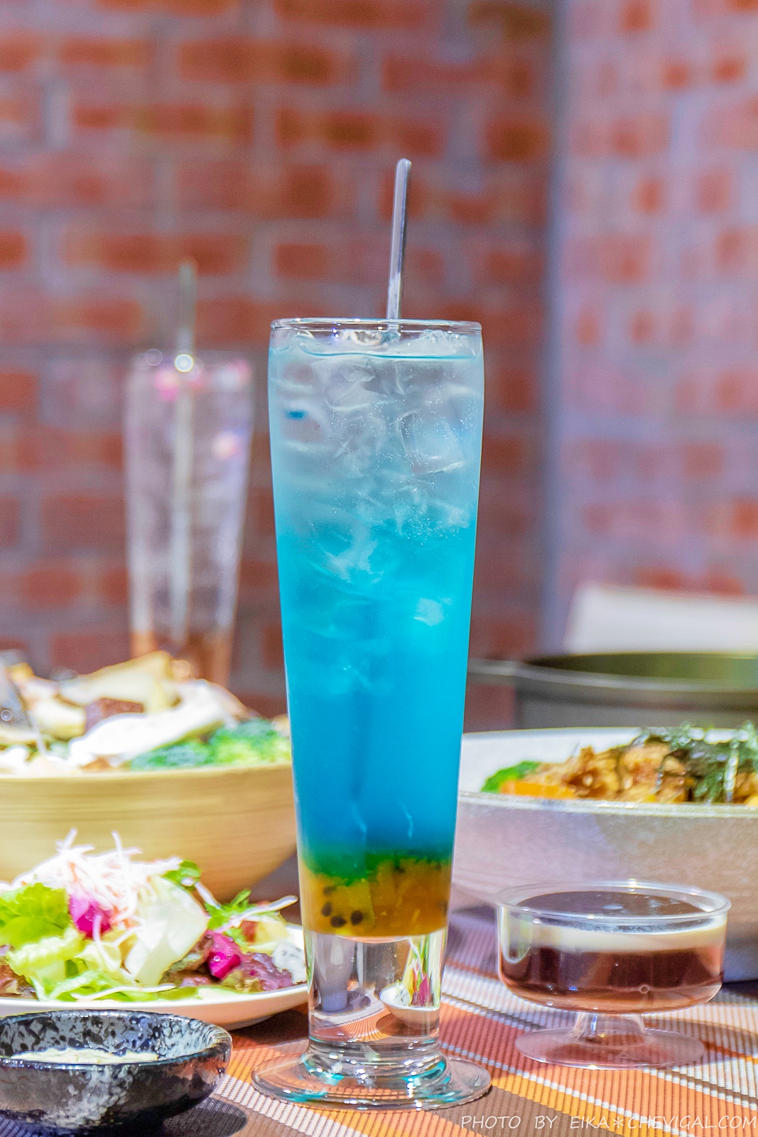 藍色夏威夷$140元,雖然這類調飲多是以糖漿調製而成,但不得不說這是我們喝過最為清爽順口的風味了,就連底部的百香果醬都是由店家自行熬製,真的是很「搞剛」啊~