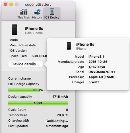 如果想要得知更多手機的細節資訊,還能查看製造出廠的年份與日期,以及電池循環的次數,就能更進一步了解平常手機使用的頻率。