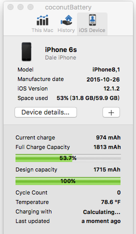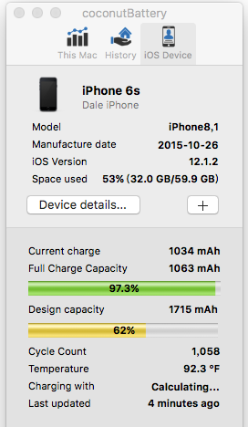 照片上這顆電池的健康度只有62%,通常會建議低於80%以下就會需要更換電池。
