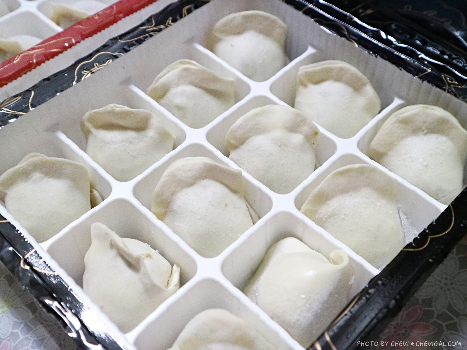 打開後可以看到圓滾滾的水餃平躺在小格子裡,是不是覺得很療癒呢?