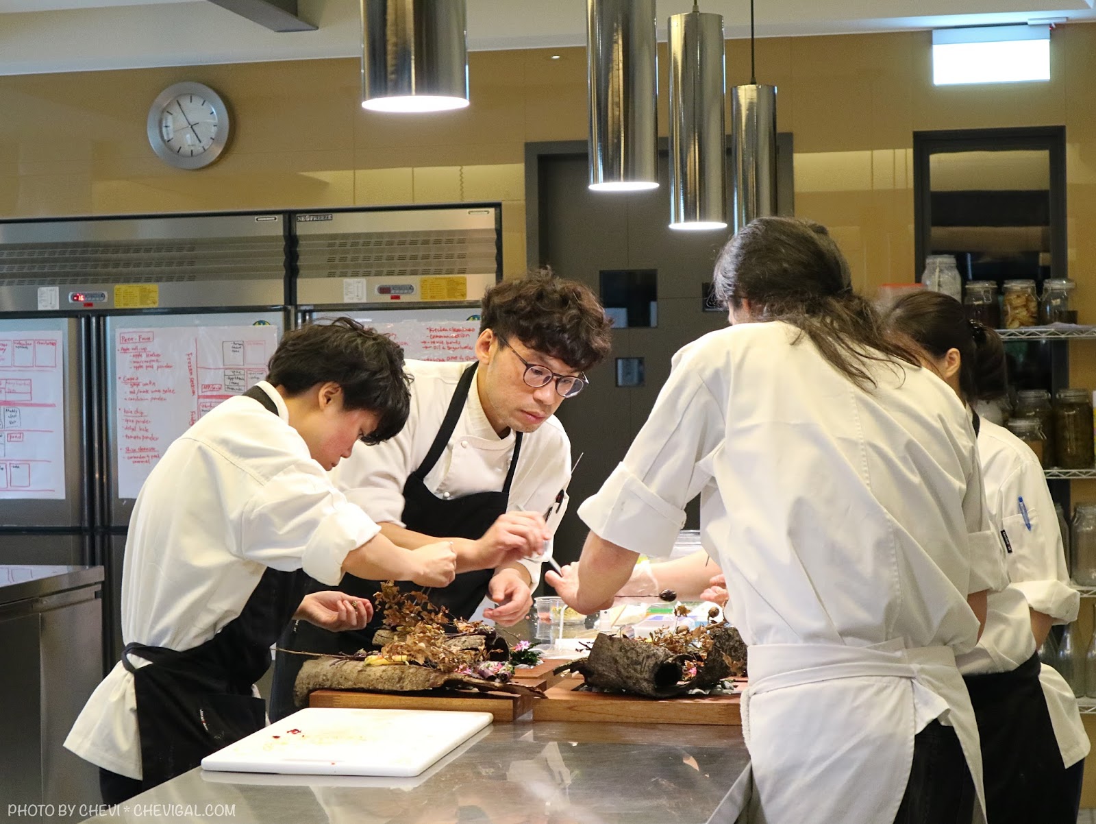 更可貴的是,由於這裡一年只營業兩個月,所以有部份的廚師離開原本的工作,選擇來到這裡呈現心目中最為美好的饗宴。主廚桌與廚房之間使用的是落地透明窗,享用美味料理的同時,也能欣賞廚師們精湛的手藝。