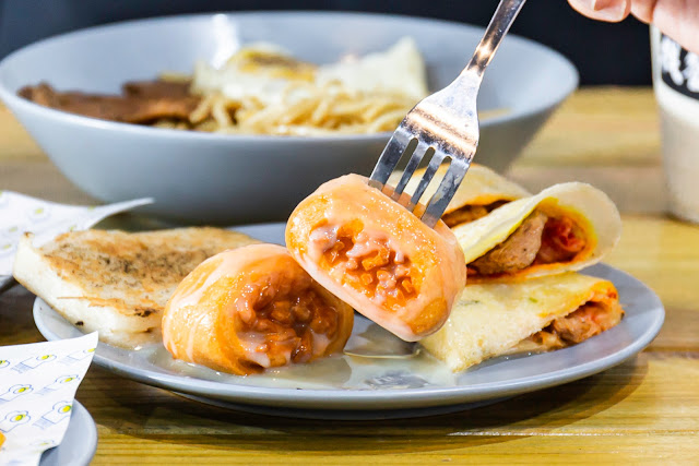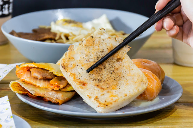 套餐原本附的是原味蛋餅,我們補差價換成了泡菜肉排口味;泡菜吃來酸辣夠味,偏向韓式泡菜的風味,搭配紮實的肉排還蠻過癮的。