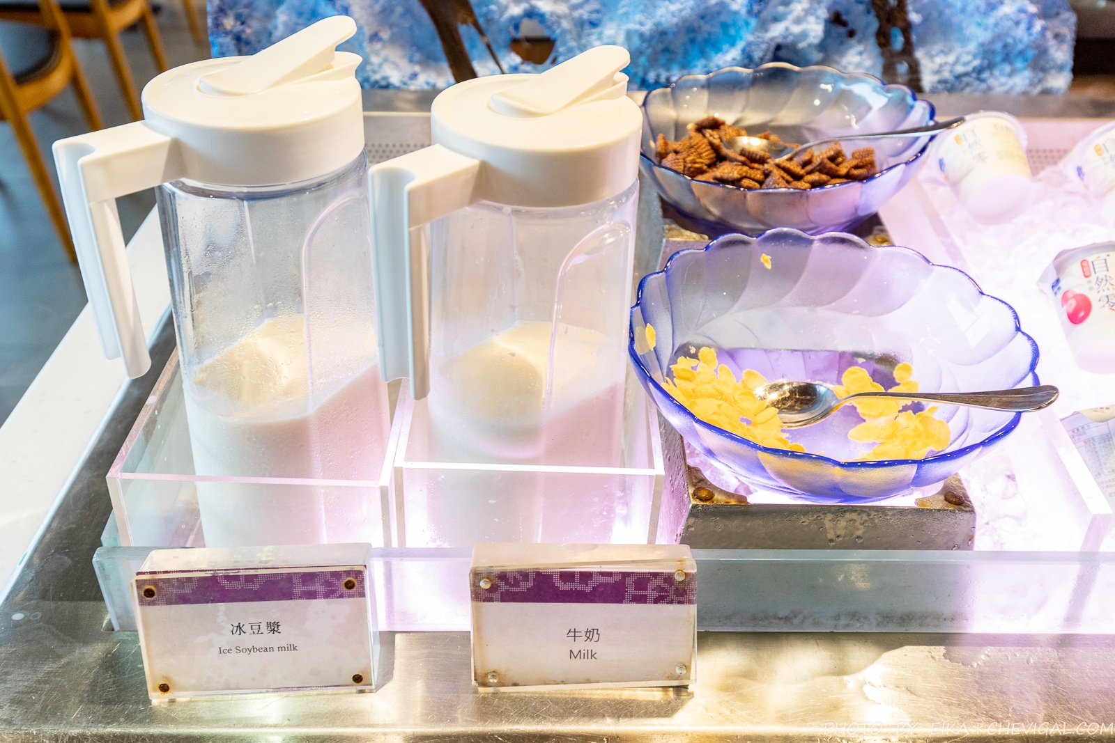 像是生菜與各式起司片,另外還有冰豆漿、牛奶與麥片可以搭配。