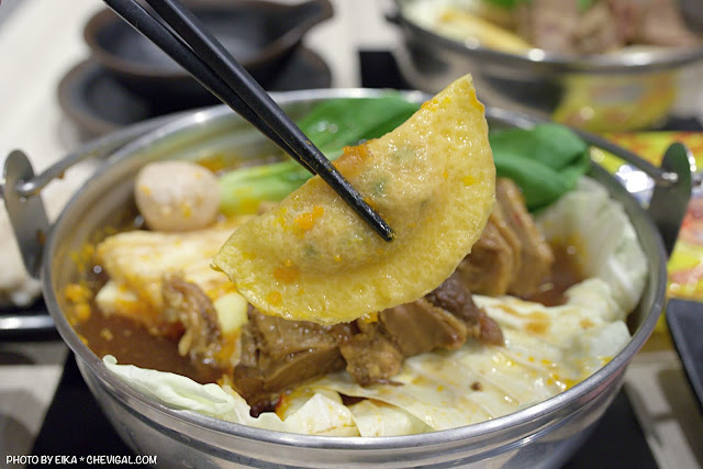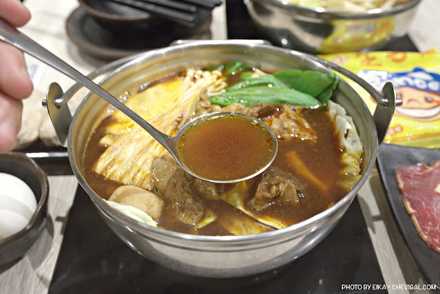 魚編點的是牛腩煲,裡面有4條牛肋條、火鍋料與菜盤,是錵鍋獨家的鍋物品項。
