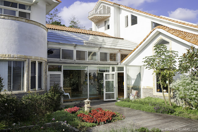 第一間的外觀有點類似庭園城堡,中間的屋頂甚至是設計為玻璃屋的概念,覺得光照太強的時間可以遮蔽起來,需要光照時又能將遮罩收起來,讓陽光自然地灑落在屋內,相當夢幻。