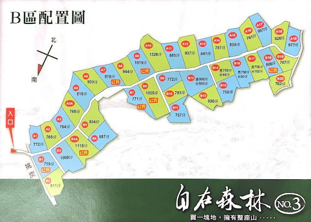 每塊土地前面都還會有標明該區域的坪數大小,不過因為不同的土地會有不同的景致,或是面山或是或向海線的區別,以及前面提及的不同地勢與坡度,這部份會建議買主可以親自到訪選擇。
