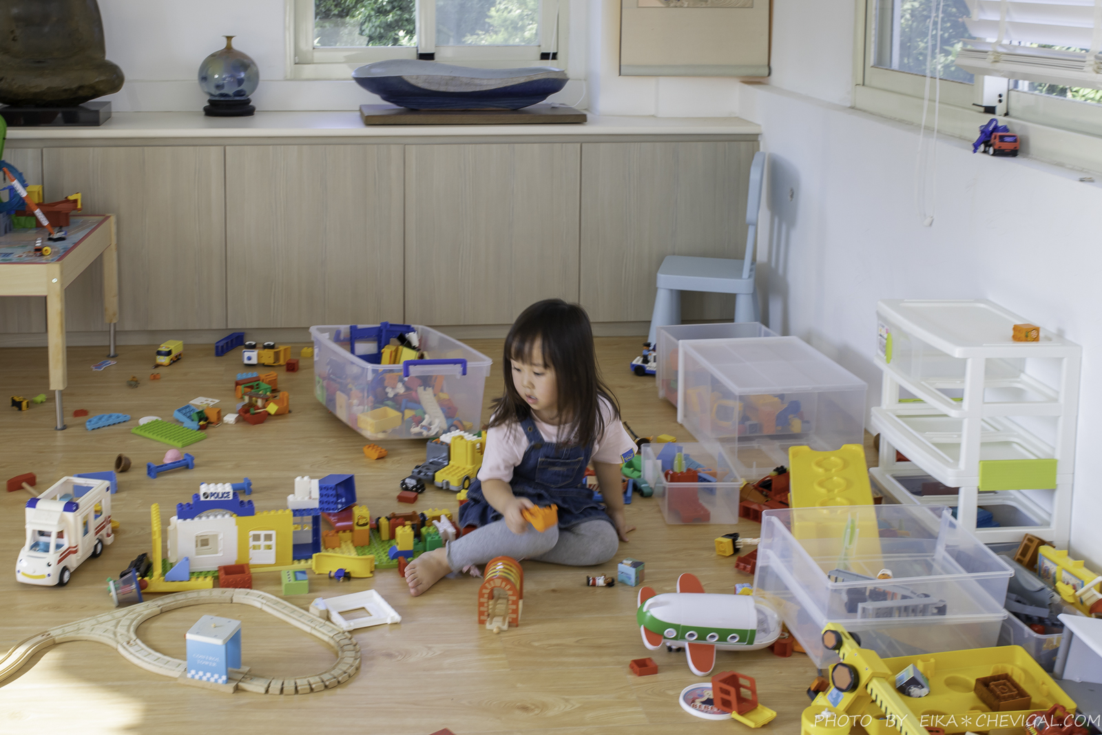 屋內是採挑高的設計,搭配大面積的木質地板,顯得格外寬敞舒適,特別適合陪伴家中的嬰幼童玩耍,稍微佈置一下就像是溫馨歡樂的遊樂園~