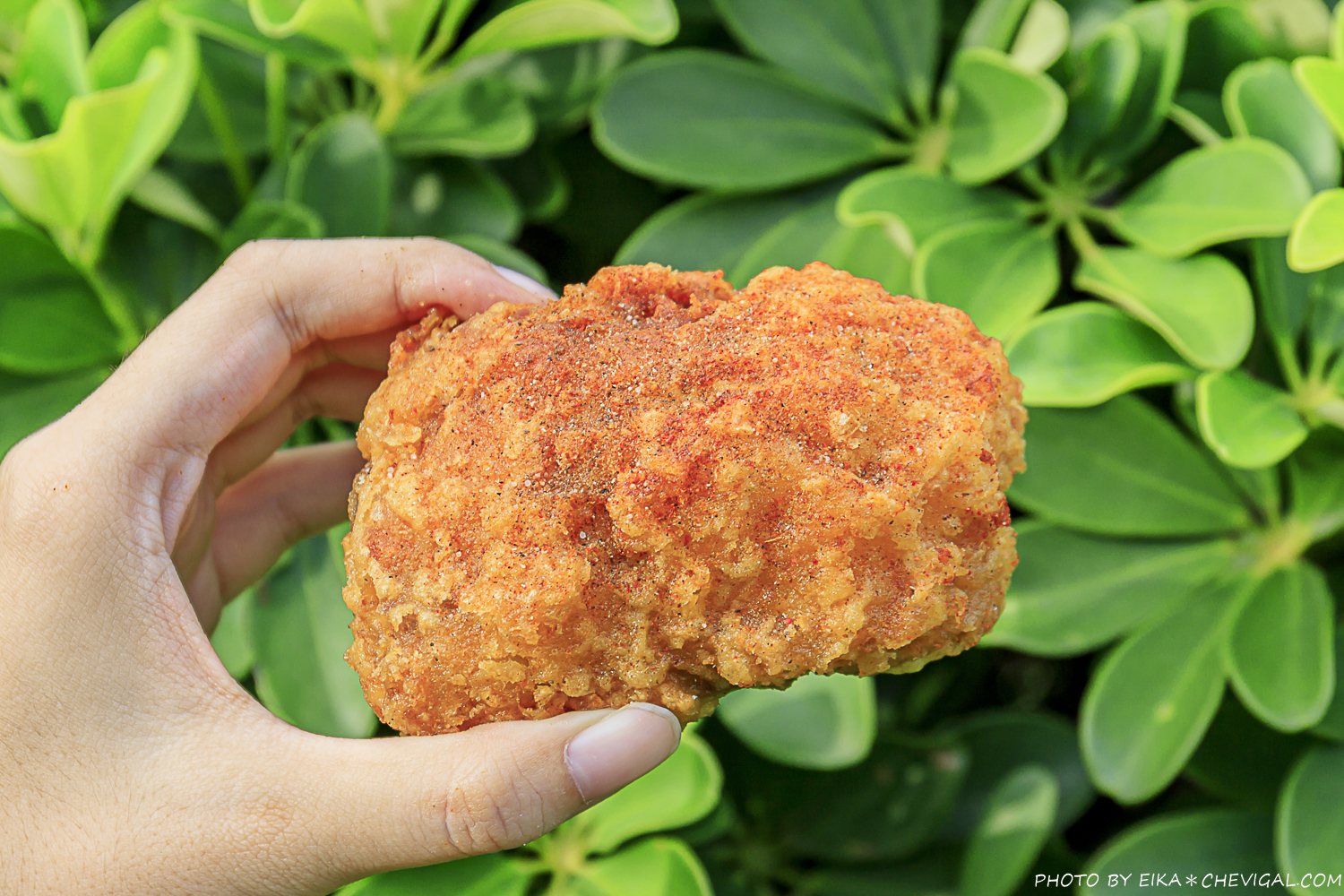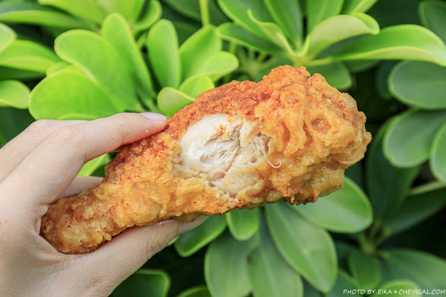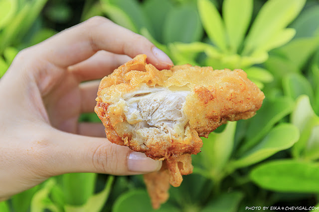 雞塊的厚度頗有誠意,厚實的肉質又不失鮮嫩彈牙,水分也是相當飽滿,拍照的時候還要擔心肉汁滴下來呢!(結果手模魚編不知為何辣粉突然跑進眼睛裡,超痛XD)
